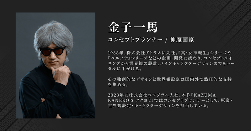 これまで『真・女神転生』シリーズや『ペルソナ』シリーズで、コンセプト設計や世界観づくり、キャラクターデザインを牽引してきたゲームクリエイター・金子一馬氏。その後も多数のゲーム制作に関わり、2023年にコロプラへ入社しました。