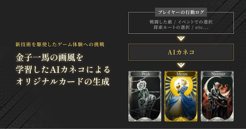 さらに今回は、コロプラの技術力を活かし、AIを活用した新しいプレイ体験にも挑戦しました。金子氏自身の世界観や画風を学習した独自のAIシステム「AIカネコ」により生成されたイラストの実装など、これまでにない試みも盛り込まれています。