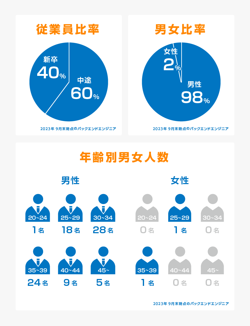 バックエンドエンジニアの4割が新卒入社の従業員です。