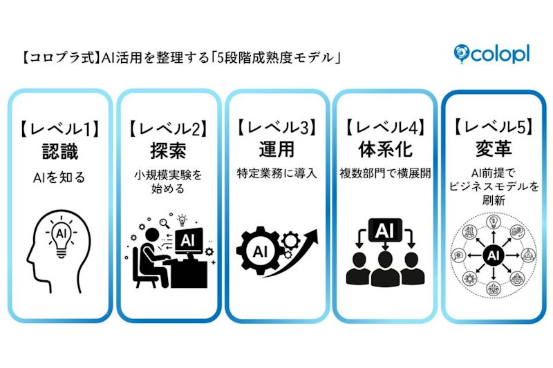 はい。コロプラではAIの導入状況を定性的に評価するために、「AI成熟度モデル」を設けています。