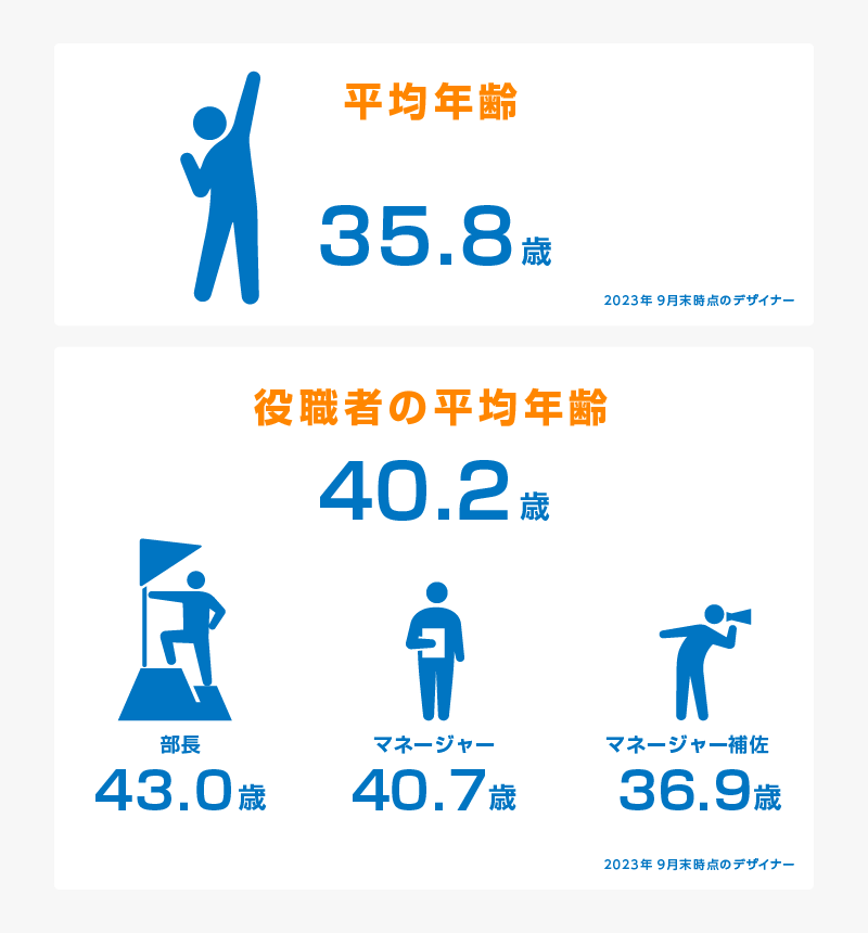 コロプラで働くデザイナーの平均年齢は「35.8歳」。そのうちの役職者だけの平均年齢は「40.2歳」です。