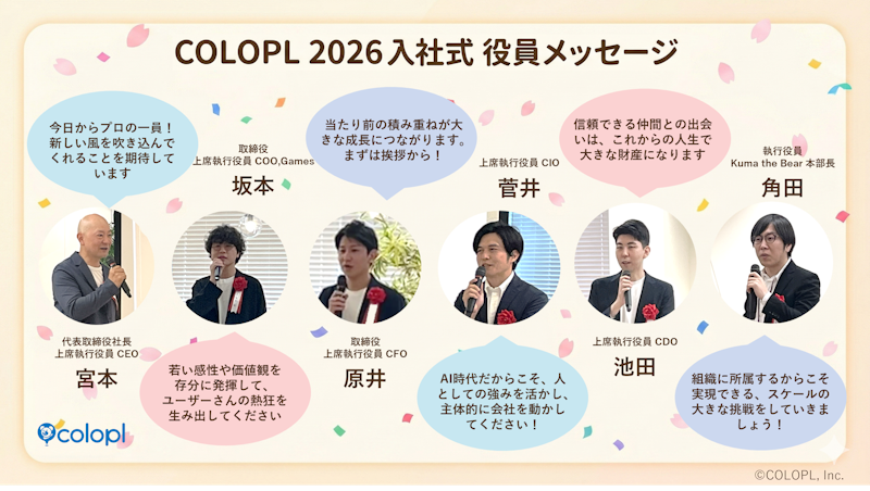 2026年4月1日、コロプラに12名の新入社員が加わりました。コロプラのMissionである「"Entertainment in Real Life" エンターテインメントで日常をより楽しく、より素晴らしく」を実現に向けて、新たな一歩を踏み出した仲間たち。今回は、入社式の様子をお届けするとともに、新入社員と採用担当者へのインタビューを通して、率直な感想やこれからの意気込みを紹介します。