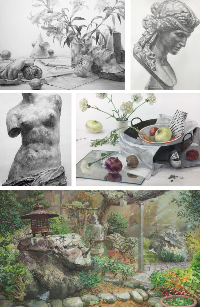 顔の表情や筋肉、身体構造などを正しく描けている作品を、数枚入れましょう。構図や組み合わせにこだわったり、デッサン対象にちょっと変わったものをセレクトしても良いです。