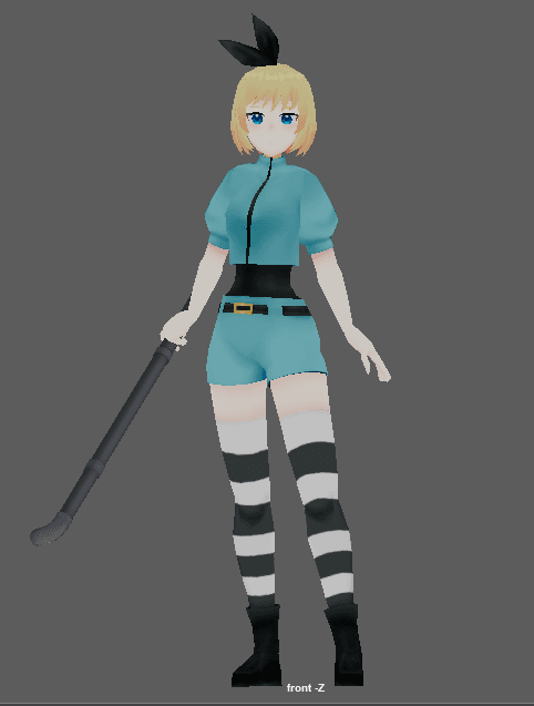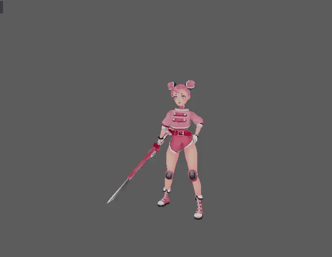 キャラクターモデル制作研修で作ったモデルに「歩き」「ジャンプ」「武器攻撃」「自由課題」のモーションを付ける。