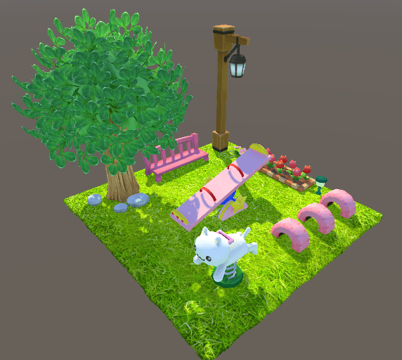 『とらべる島のにゃんこ』の背景モデルを制作し、レイアウトやライティングを勉強。