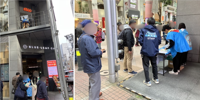 6つの商店街の中心近くにある「BLUE LEAF CAFÉ」では、スタンプラリーの記念品引き換えが行われているほか、オフィシャルショップが出店されていました。