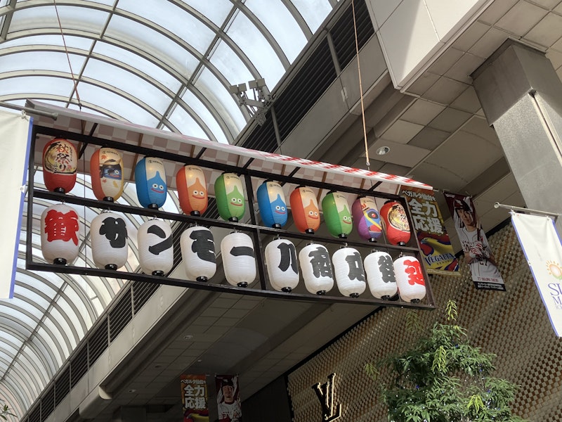 南側に伸びるサンモール一番町商店街でも、モンスター立像は人気の撮影スポットとなっていました。
