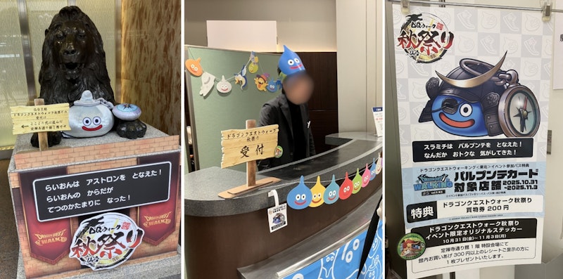 仙台三越さんのライオン像と店員さんも、ドラゴンクエストウォーク仕様でお出迎え。