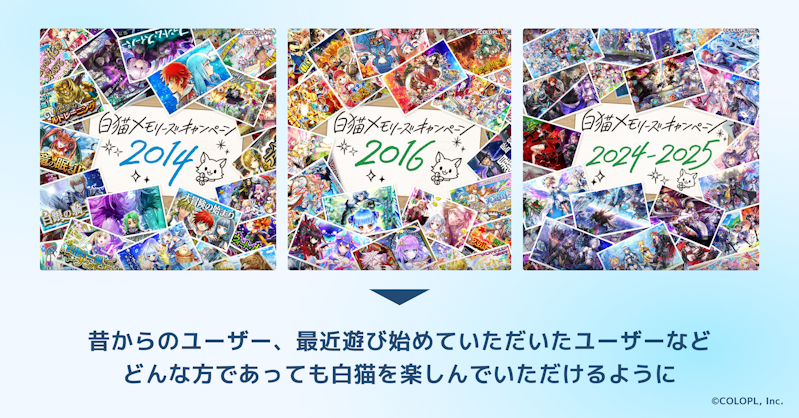 ただ、10年以上続くIPである白猫では、数年プレイしていないユーザーの方もおられます。そのような場合、「自分には関係ないか...」と思ってしまうかもしれません。私たちはそういう方も置いてけぼりにしてはいけないと考えています。
