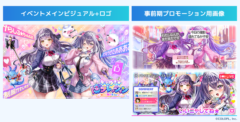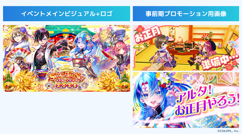 そのため、ゲーム内でもとにかく華やかさを伝えられるように、イベントメインビジュアルや事前期プロモーション用画像を用意します。