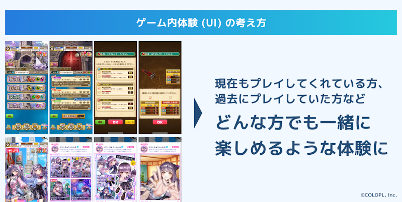 現在もプレイし続けてくれている方、過去にプレイしていた方など、どのような方であっても一緒にイベントを楽しめるようなゲーム体験にできるように、UIをデザインします。