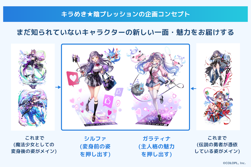 この企画に登場するシルファ、ガラティナは、それぞれ別のストーリーに登場していたキャラクターでしたが、魔法少女としての変身後の一面、別人格の一面が普段は表に出ていたので、その裏の一面を取り上げることをコンセプトとしています。