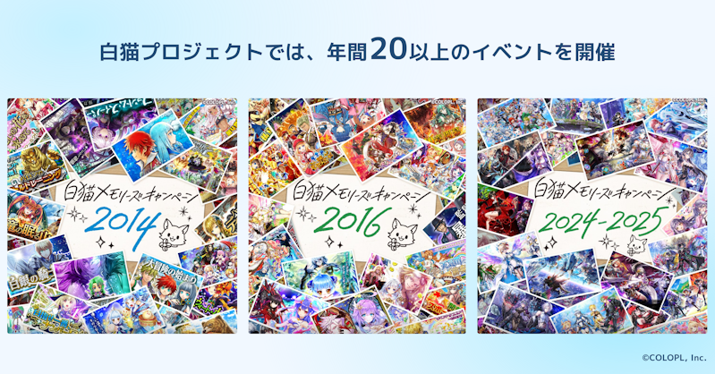 「白猫プロジェクト」では、ユーザーのみなさまに楽しみ続けてもらうために、年間20以上ものイベントを開催しています。