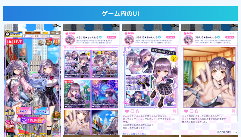 そこでゲーム内では、イベントのメインビジュアルや事前期プロモーション用の画像で「え!この子達が?」とユーザーの方を盛り上げるところからコミュニケーションを始めます。